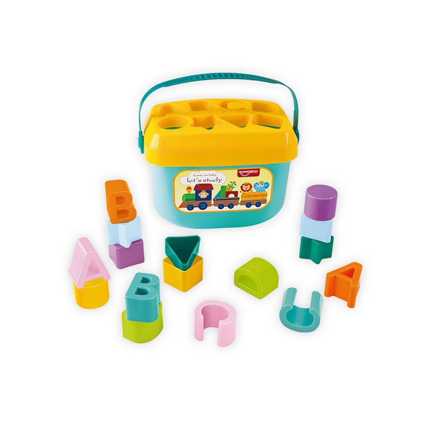 La barnet utvikle finmotorikk og gjenkjenne former og bokstaver med denne putteboksen. Inkludert 16 klosser, både former og bokstaver i fine farger.