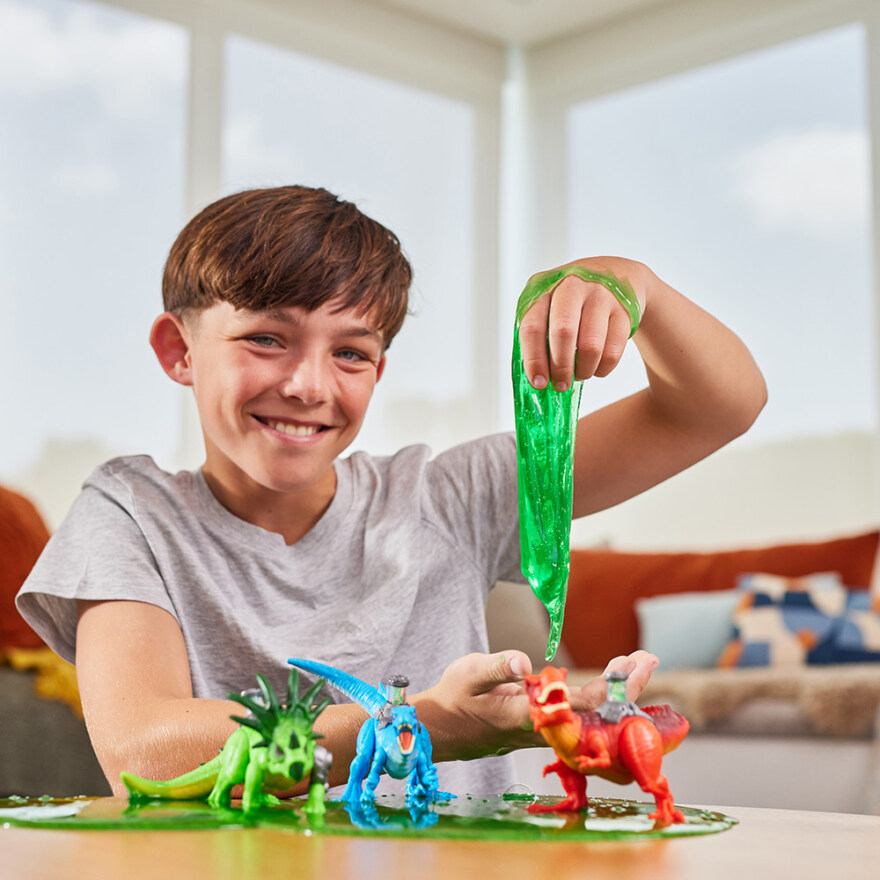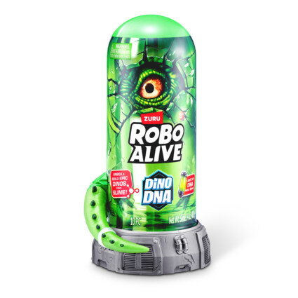 Oppdag spenningen med Robo Alive Dino DNA! Samle alle tre dinosaurene – T-Rex, Velociraptor og Styracosaurus – som kommer med lyder og overraskelser. Grav frem dinosaurdeler fra slim, og bruk delene til å bygge din egen realistiske dinosaur. Hver figur har en lysende "DNA Helix Spine" på ryggen som gjør leken enda mer levende og spennende.