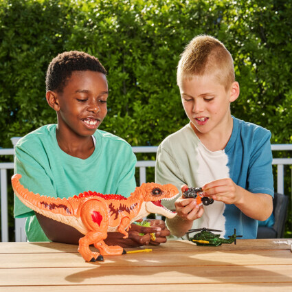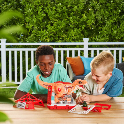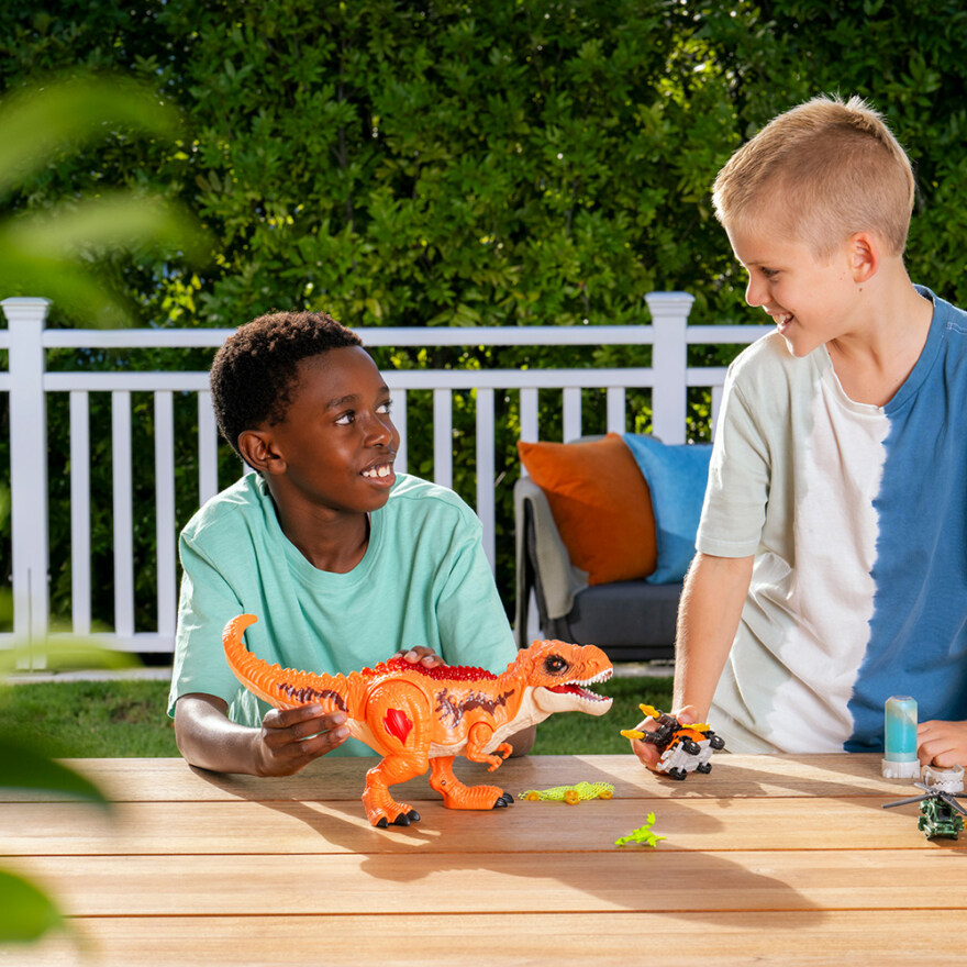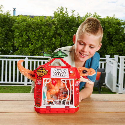 Bruk fellene, våpnene og verktøyene for å fange T-Rexen som har brytet seg løs fra buret sitt.