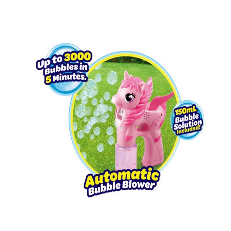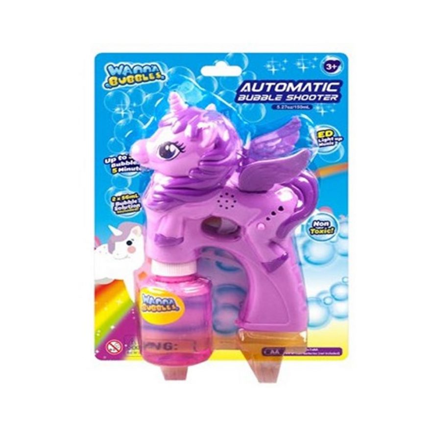 Kjempekul enhjørning såpeboblepistol med lyd og lys. Lager opp til 3000 bobler på 5 minutter.