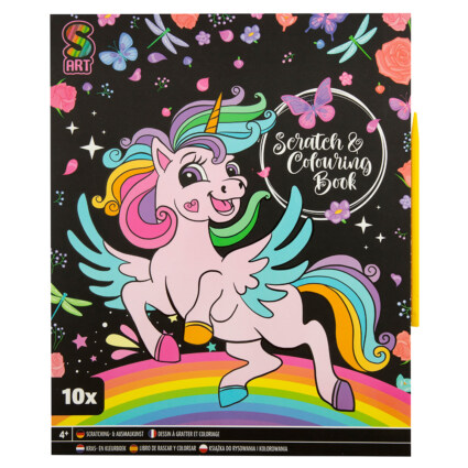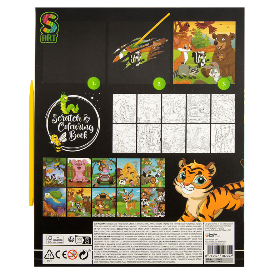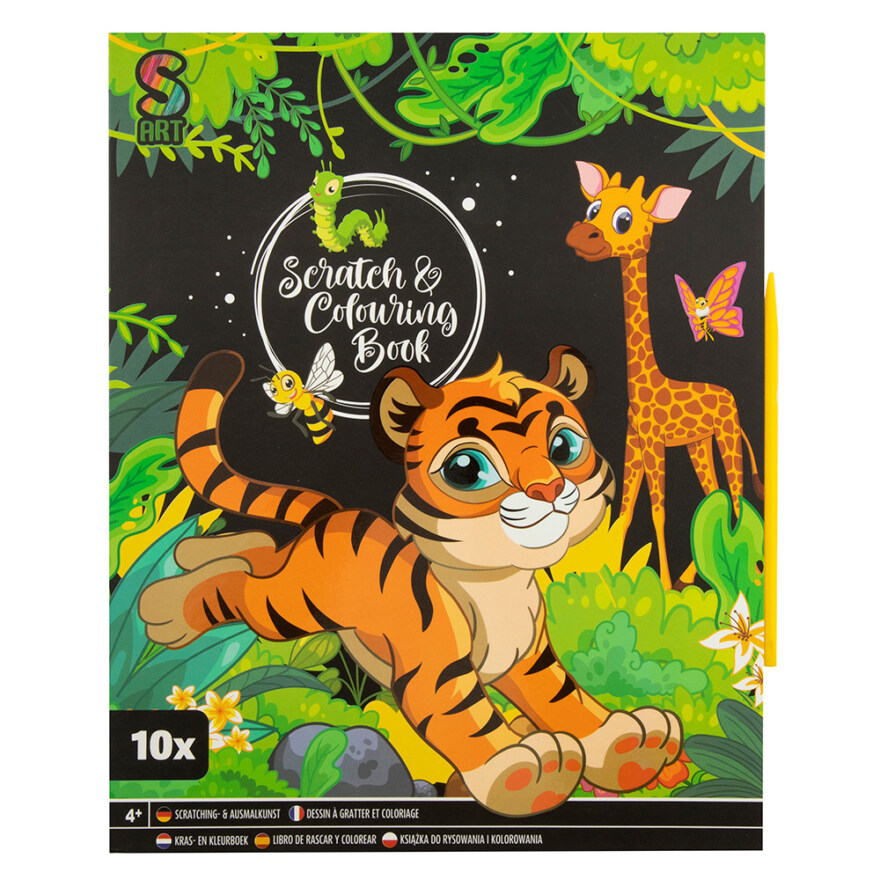 Skrap frem fargene med tilhørende redskap. Her er det hele 10 ark med flotte ulike motiv som skal skrapes frem.