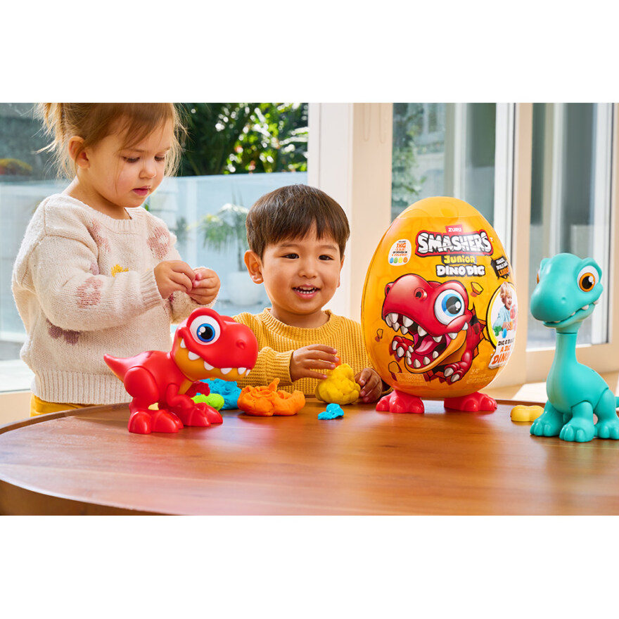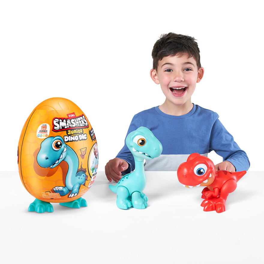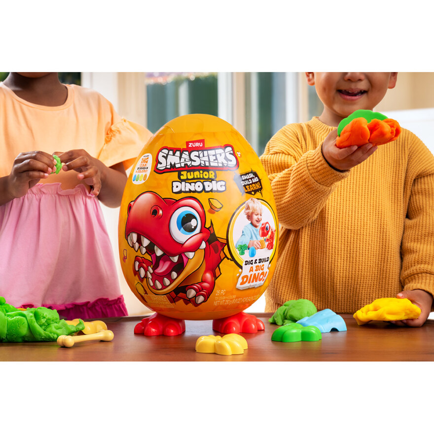 Gjør deg klar for et storslått dinosaureventyr med Smashers Junior Dino Dig! Dette store egget er fylt med 25 spennende overraskelser og gir barna en fantastisk mulighet til å grave, bygge og lære om dinosaurer.