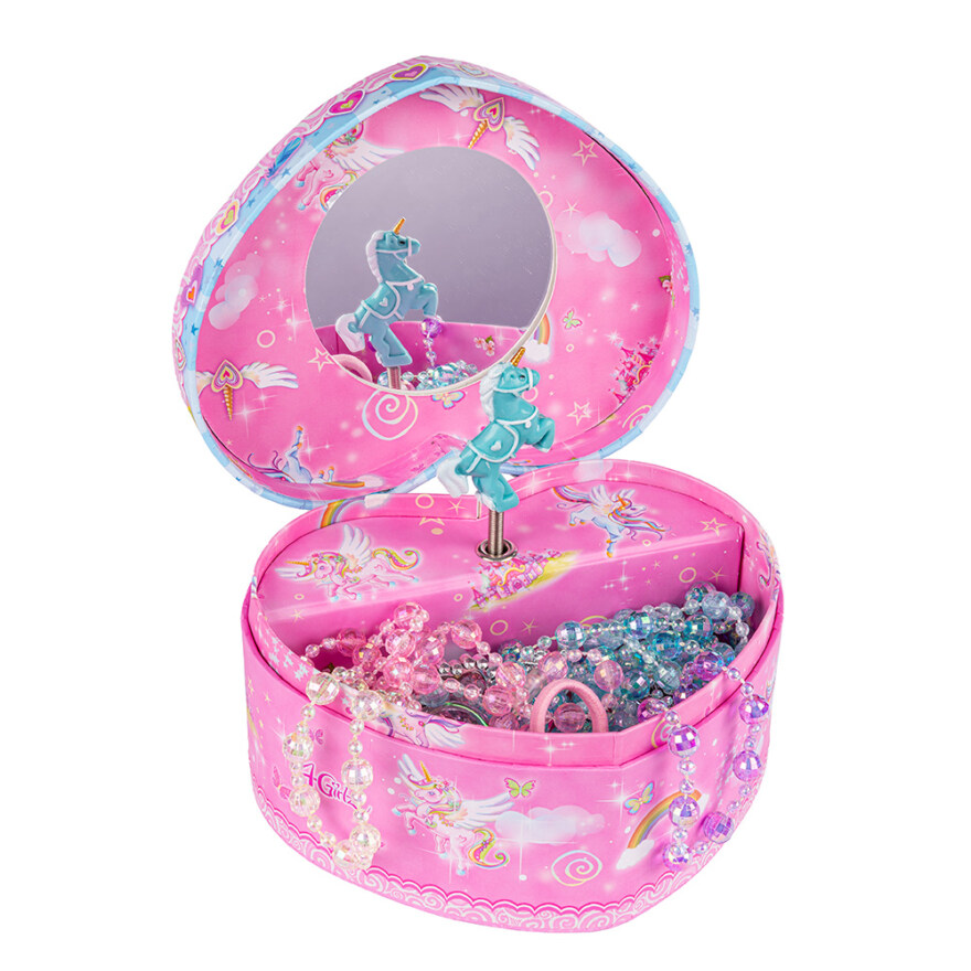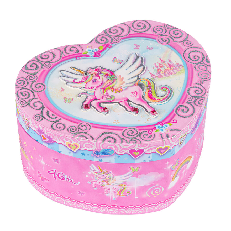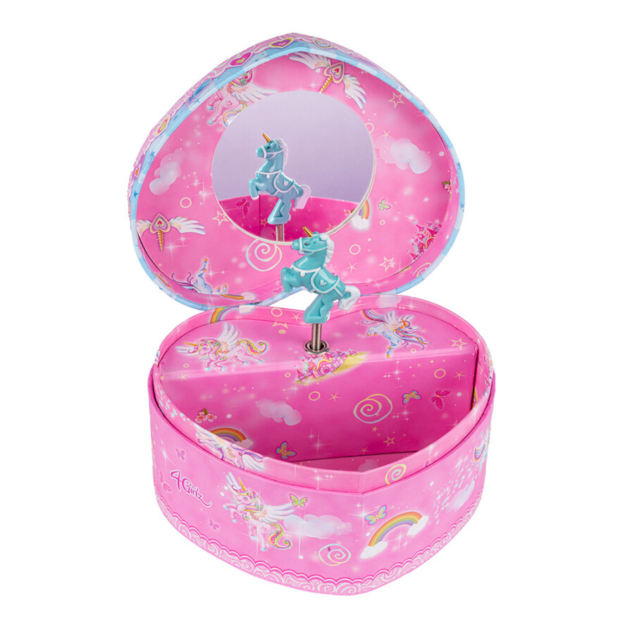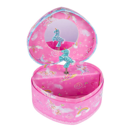 Dette magiske, hjerteformede smykkeskrinet spiller musikk mens en sjarmerende enhjørning beveger seg rundt. Smykker følger ikke med. En herlig gave som bringer glede og magi til ethvert barnerom!