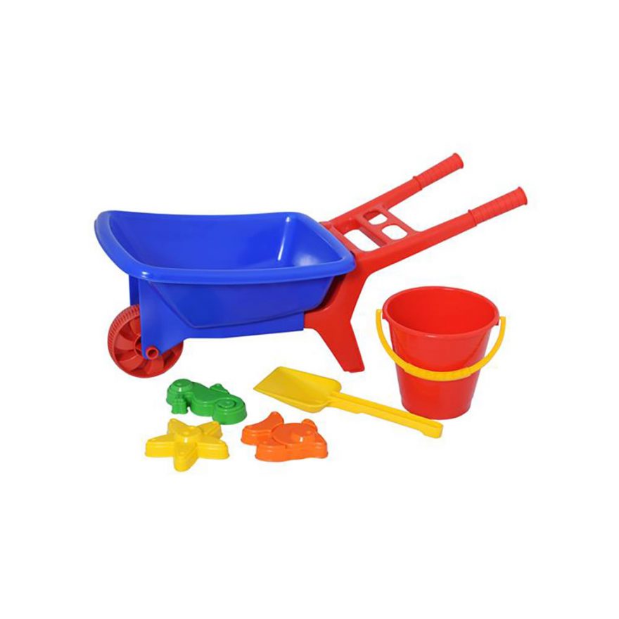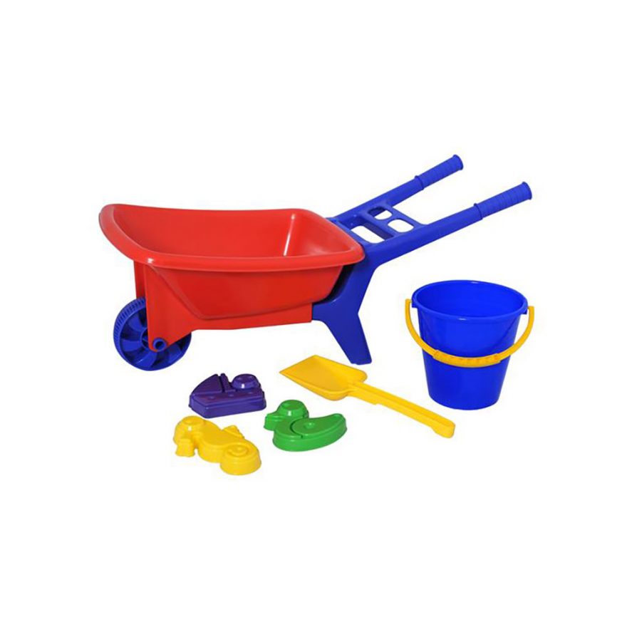 Alt du trenger for en deilig dag ute. Inneholder trillebår, bøtte, spade og sandformer.