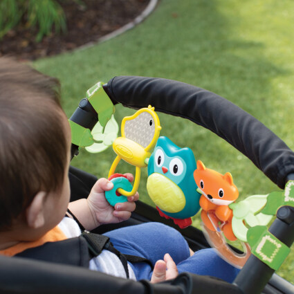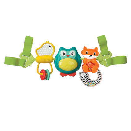 Infantino Vognrangle har leker som snurrer, og innholder sanger og lyder. Perfekt aktivitetsleke for de minste. Passer på de fleste barnevogner og bilseter.