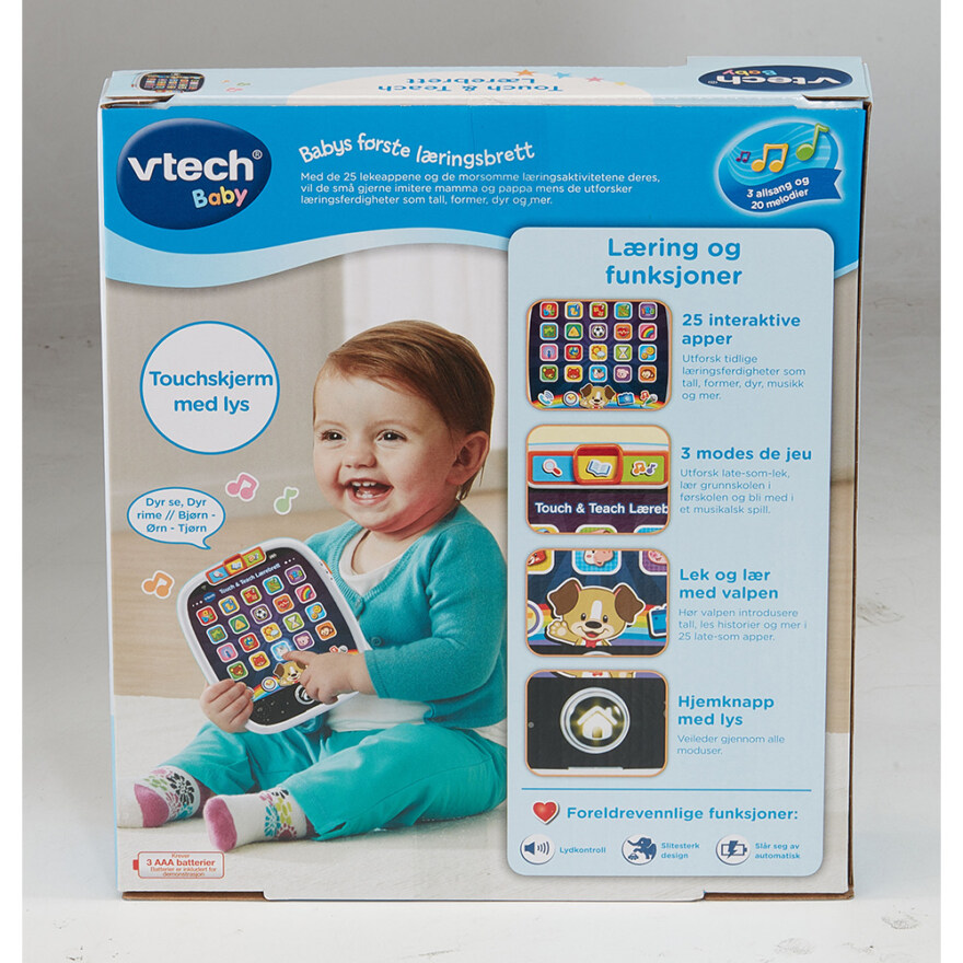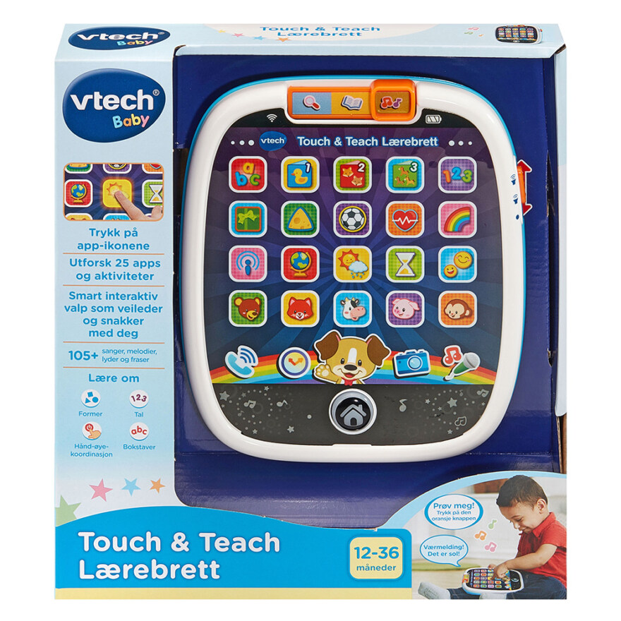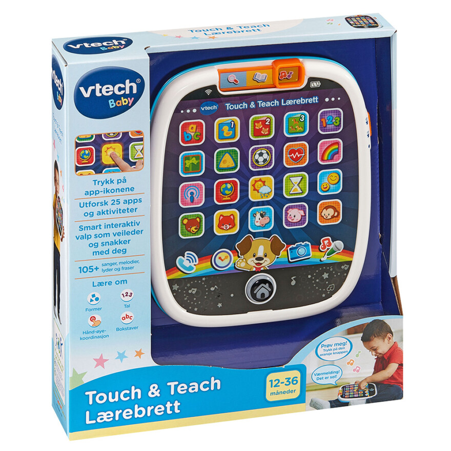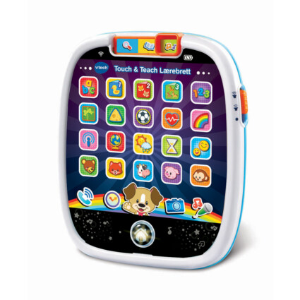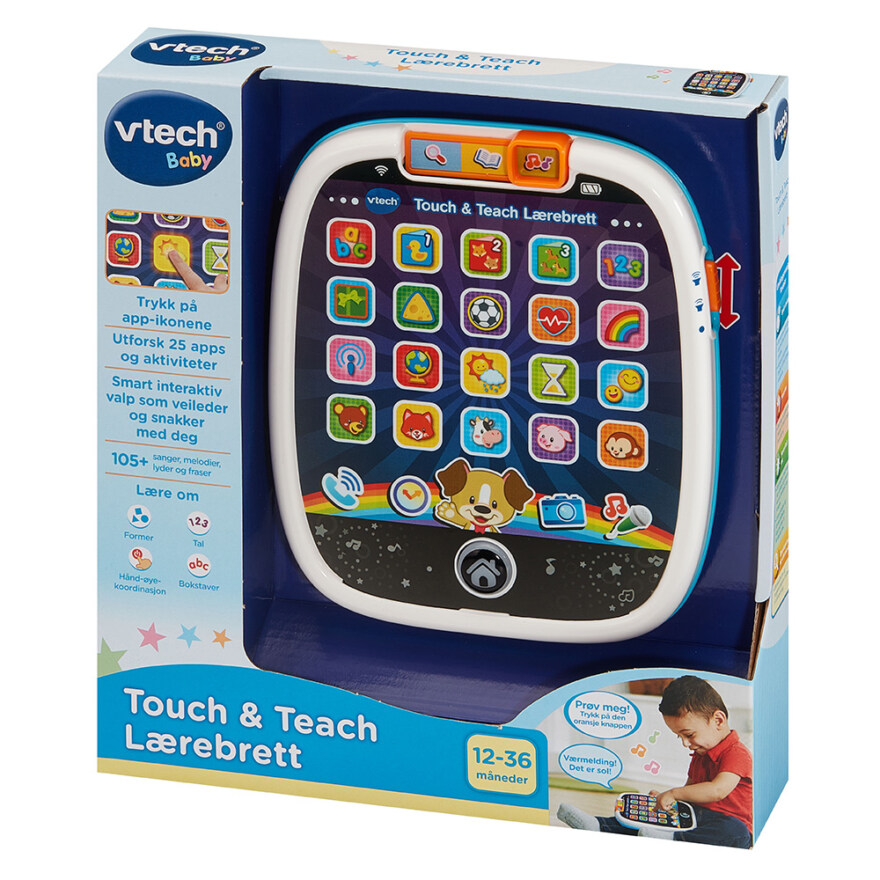 Din lille vil elske sitt eget nettbrett med VTech Touch & Teach Tablet! Med 25 app-knapper som lyser opp, kan barnet utforske, oppdage og lære tidlige ferdigheter som tall, former, dyr, farger, bokstaver og mye mer.
