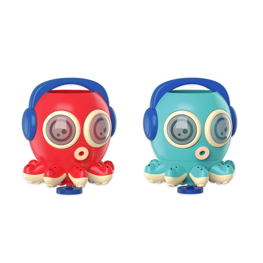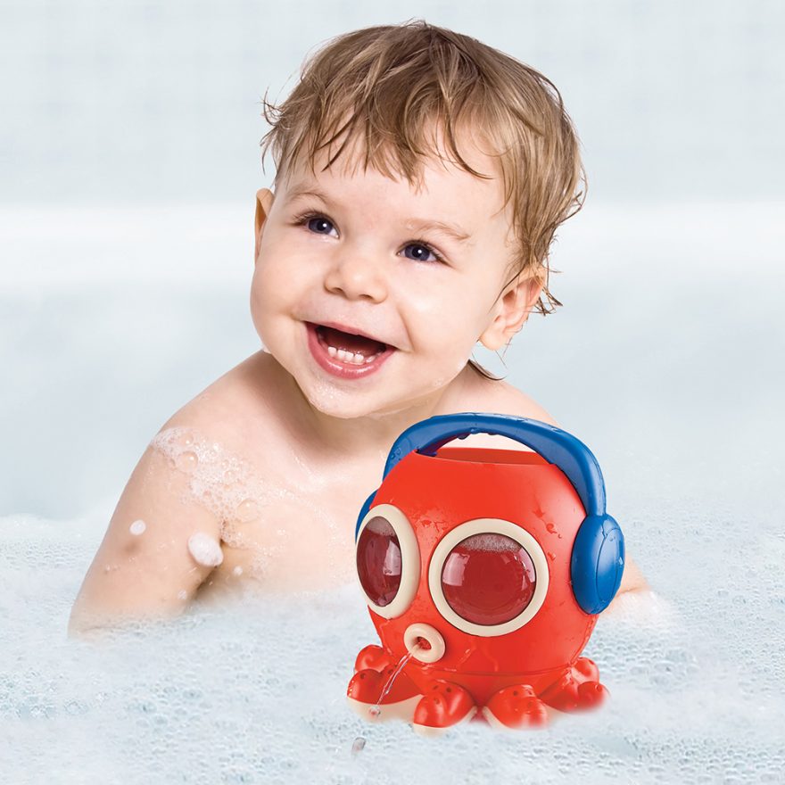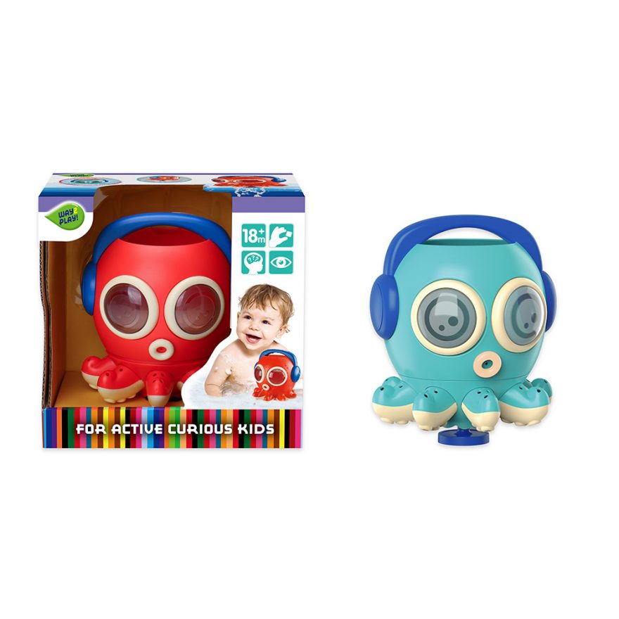 Morsom blekksprut badeleker fra Way2Play. Fyll blekkspruten med vann og ta den opp. Vannet renner ut gjennom de roterende tentaklene og munnen.