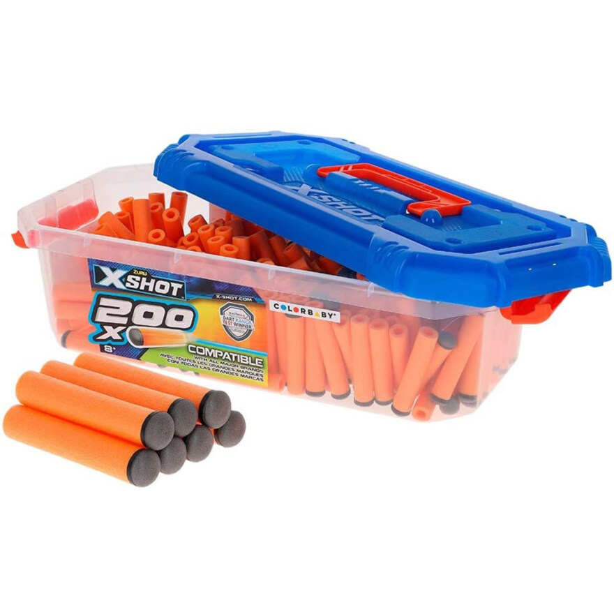 Aldri gå glipp av action med denne pakken med 200 oransje refill piler! XSHOT piler er kompatibel med mange andre store merker. Pilene leveres i en praktisk plasteske med bærehåndtak.
