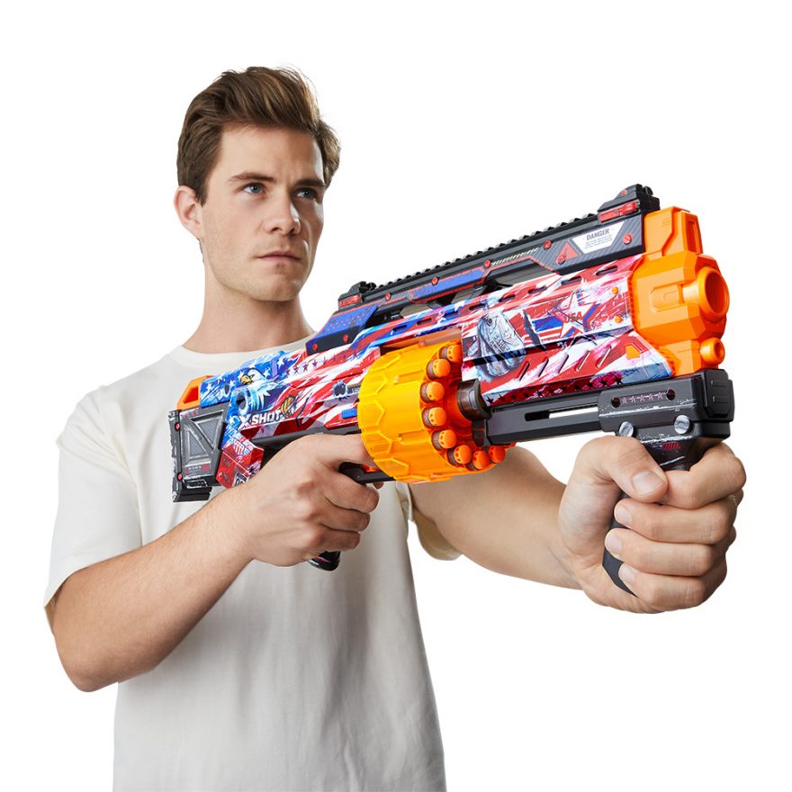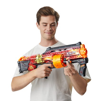 Blaster med roterende magasin som rommer 16 piler. Kommer i 4 forskjellige design.