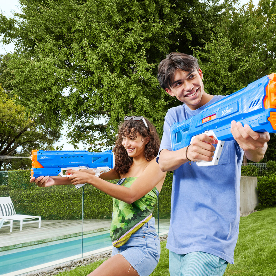 Gjør deg klar til å regjere over sommerens vannkamper med XSHOT Water Fast Fill Motor Soaker! Denne motoriserte blasteren fylles opp på bare 1 sekund. Med en kapasitet på 1100 ml og en rekkevidde på opptil 9 meter er den ustoppelig. I tillegg sørger det ekstra oppladbare batteriet for at moroa varer lenger. Gjør deg klar til å dominere hver eneste vannkamp i sommer!